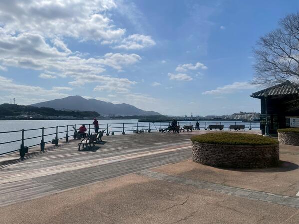 周りでは釣りをしてる人もいて、若松の海沿いは気持ち良い~!